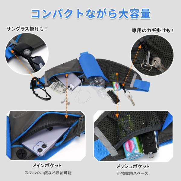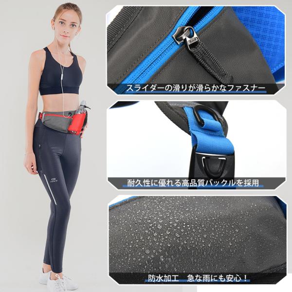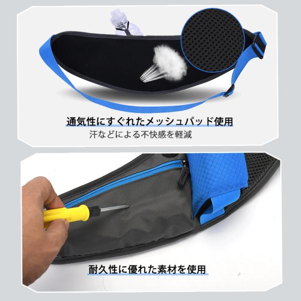 ランニング ポーチ ジョギング バッグ ウェスト ポーチ ボトルポーチ イヤホンホール付き ボトルホルダー付き 反射材付き ウォーキング 大容量 通気 軽量 防水