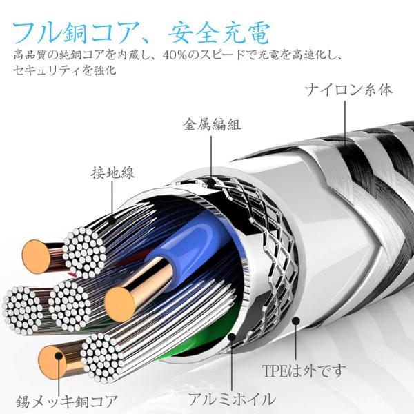 耐久性に優れた二重織りナイロン製ケーブルは、耐破壊性が極めて高いです。高品質のナイロン編みによる長持ちです。90日保証付きます。