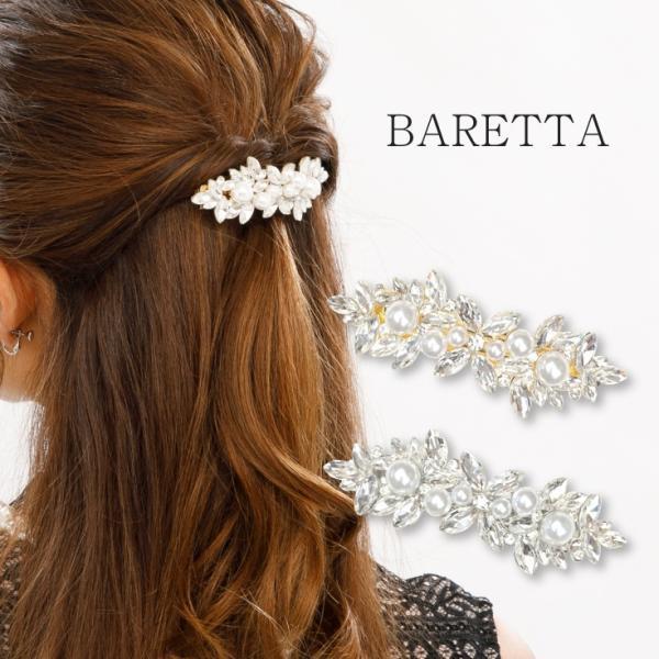 バレッタ 結婚式 アクセサリー パール 髪飾り イミテーションパール リーフ ビジュー ストーン 華やか 髪留め
