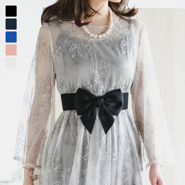 ゴムベルト レディース リボン 太い 太め ワイド 白 黒 リボンベルト オケージョン お呼ばれ ウエストマーク アクセント フォーマル 結婚式 スナップボタン