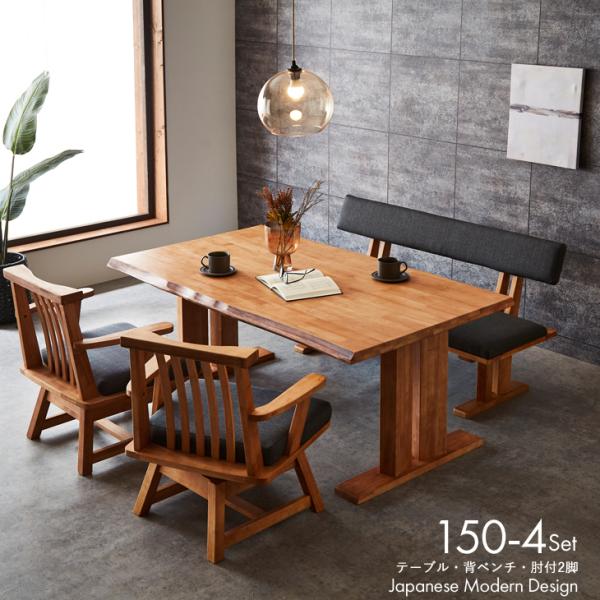 ダイニングセット ベンチ 4点 モダン ダイニングテーブルセット ダイニング4点セット 回転椅子 背もたれ付ベンチ 和風 無垢 150cm 木製 天然木 ダイニングテー