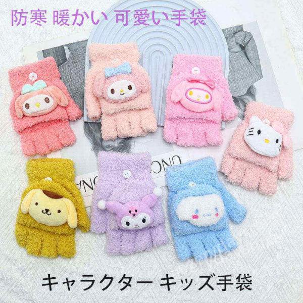 手袋 キッズ メール便で送料無料 のびのび手袋 キャラクター クリスマスプレゼント 子供 6歳-14歳 女の子 男の子 親子手袋