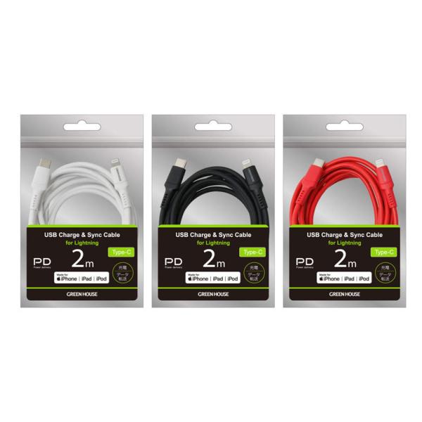 ライトニングケーブル 2m 認証 Lightning USB Type-C 充電 データ転送 iphone ケーブル GH-ALTCA200 グリーンハウス
