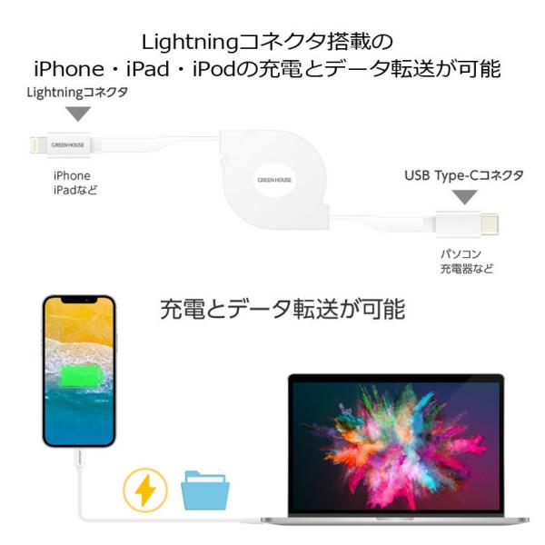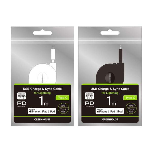 ライトニングケーブル USB Type-C 巻き取り式 1m 認証 Lightning 充電 データ転送 GH-ALTCMA100 グリーンハウス