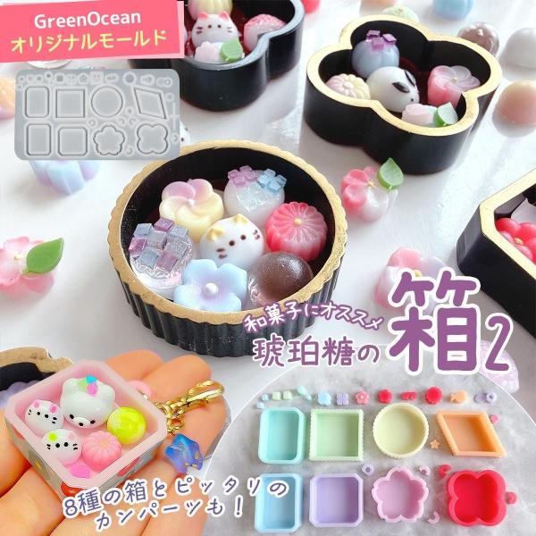 シリコン型・モールド 琥珀糖の箱2 シリコンモールド レジン型 セット ボックス パッケージ ケース カン付き シェイカー UVレジン GreenOceanオリジナル♪