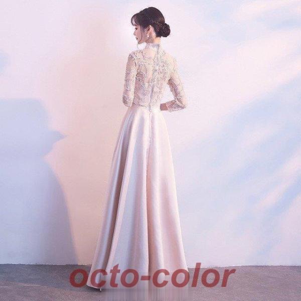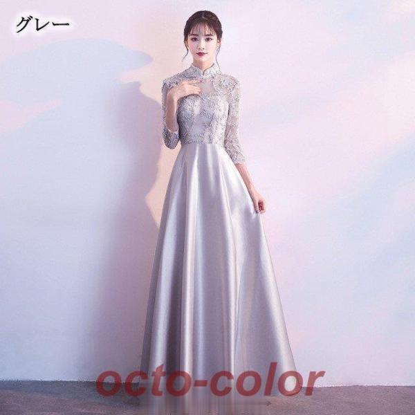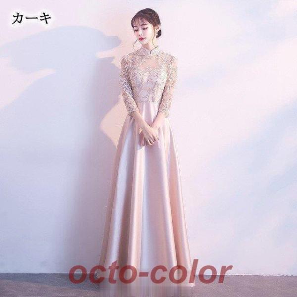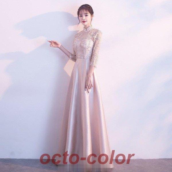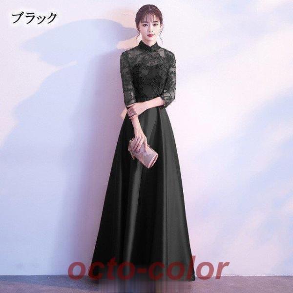 チャイナドレス ロング パーティードレス サテン 高級感 エレガント イブニングドレス 黒 二次会ドレス お呼ばれ 結婚式ドレス
