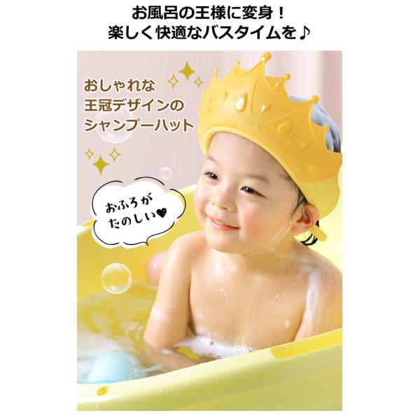 目と耳を楽しくガード! *出産祝い/防水/王冠型/クラウン型/赤ちゃんグッズ/ベビー/ベビー用品/保護/お風呂グッズ/ベビー用/シャンプーキャップ/帽子/バスハット/サイズ調節/シャンプー用/トレーニング/訓練/ブロック/イエロー/黄色/ネイビー/紺色/コーラルピンク/ピンク/バスバイザー/バスタイム/赤子/乳児/乳幼児/小児/1歳/2歳/3歳/4歳/5歳/6歳/7歳/8歳/9歳/10歳/児童/保育園/年少/年中/年長/幼稚園/園児/小学生/低学年/未就学児/小学校/こども/子ども/入園祝い/プレゼント/ギフト/お祝い/贈り物/子育て/補助グッズ/お助けグッズ/ベルト調節/ゴムバンド/簡単装着/男の子/女の子/孫/姪/甥/面白い/おもしろグッズ/可愛い/ユニーク/コスプレ/キング/便利用品/子供用品/プリンス/プリンセス/お姫様/王子様/メルヘン/お風呂嫌い/シャンプー嫌い/シャワー嫌い/苦手/入浴/浴室/子供の日/宿泊/ワンオペお風呂/ママ/パパ/シャワー*