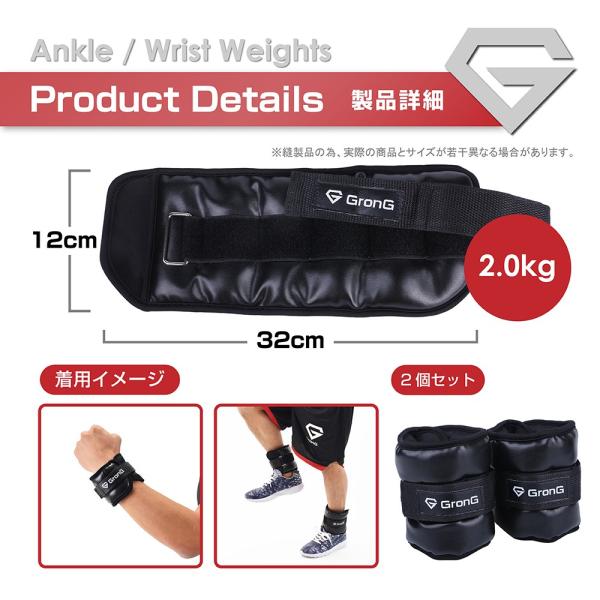 【5日はポイント5%+クーポン配布】グロング アンクルリスト 2kg 2個セット アンクルウェイト リストウェイト パワーアンクル GronG 爆買