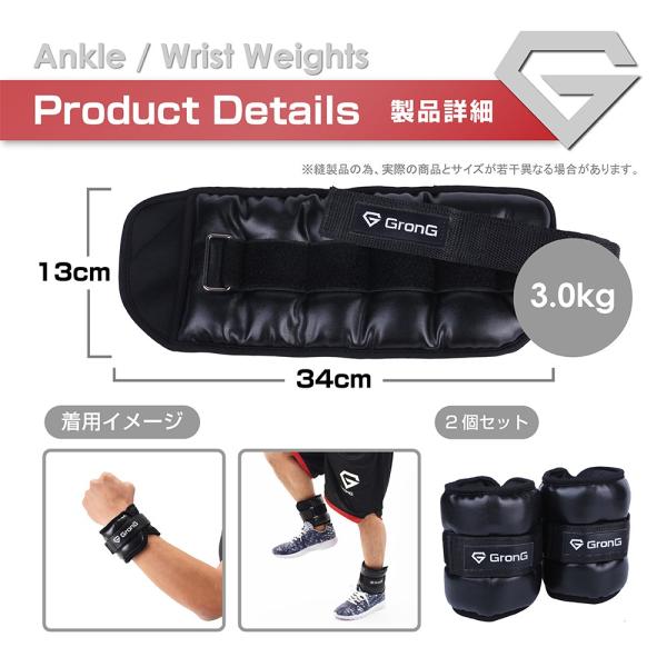 【5/1〜ポイント5%+最大600円OFFクーポン配布】グロング アンクルリスト 3kg 2個セット アンクルウェイト リストウェイト パワーアンクル GronG 爆買