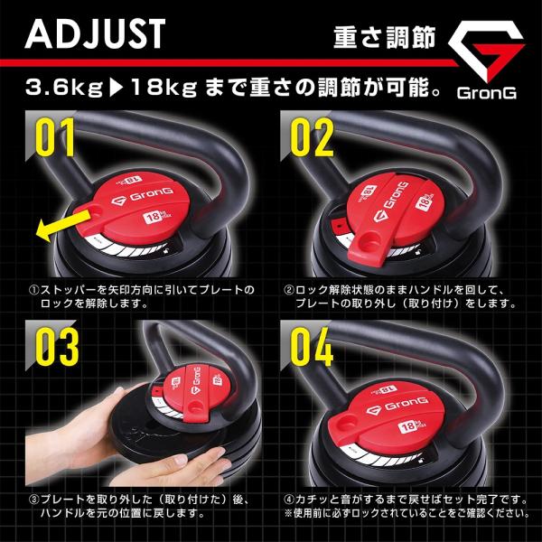【5/1〜ポイント10%+最大600円OFFクーポン】グロング 可変式 ケトルベル ダンベル 3.6kg18kg トレーニング マニュアル付 GronG 爆買