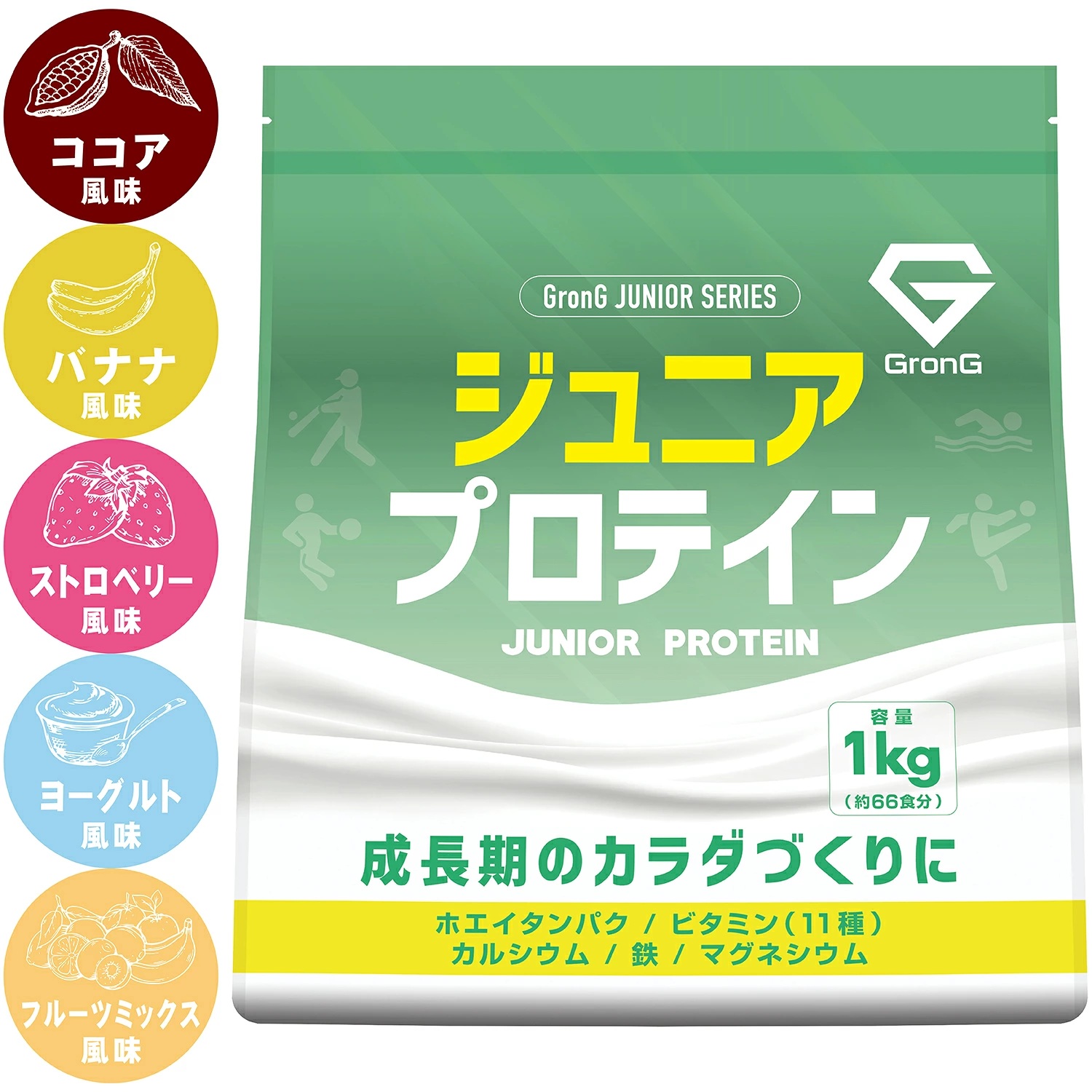 【5日はポイント5%+クーポン配布】グロング ジュニアプロテイン 1kg 風味付き GronG 爆買