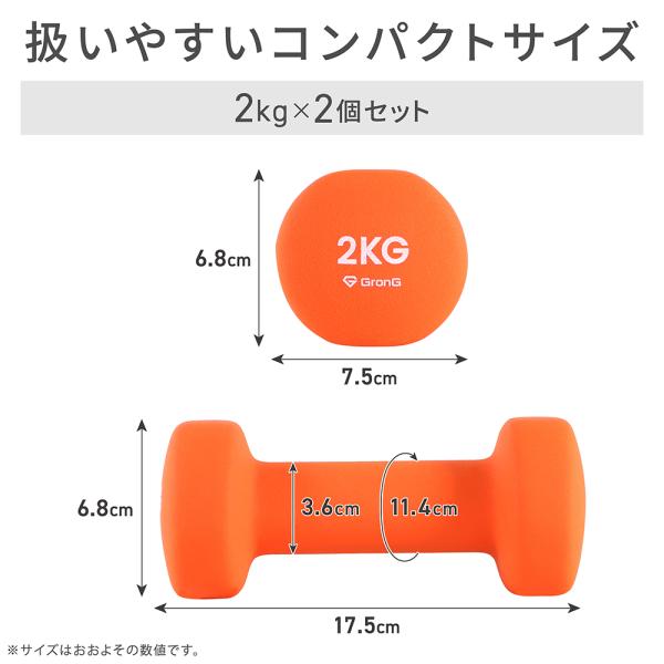 【5/1〜ポイント10%+最大600円OFFクーポン】グロング ダンベル 2kg 2個セット オレンジ GronG 爆買