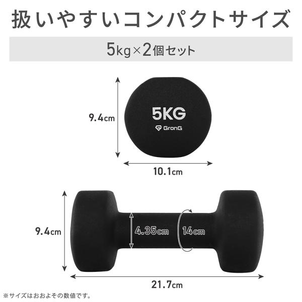 【5/1〜ポイント10%+最大600円OFFクーポン】グロング ダンベル 5kg 2個セット ブラック GronG 爆買