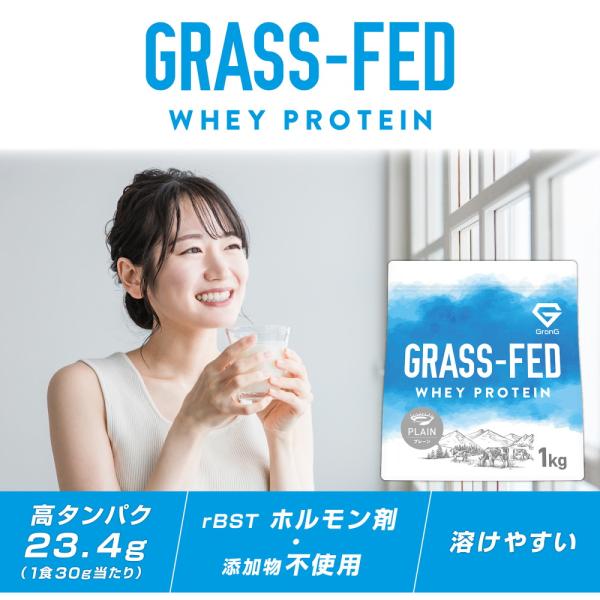 【5/1〜最大600円OFFクーポン配布】グロング GronG グラスフェッド プロテイン ホエイプロテイン 1kg プレーン 添加物・ホルモン剤 無添加 爆買