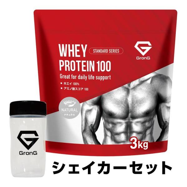 【5/1〜最大600円OFFクーポン配布】グロング ホエイプロテイン100 スタンダード シェイカー セット 甘味料・香料無添加 ナチュラル 3kg 爆買
