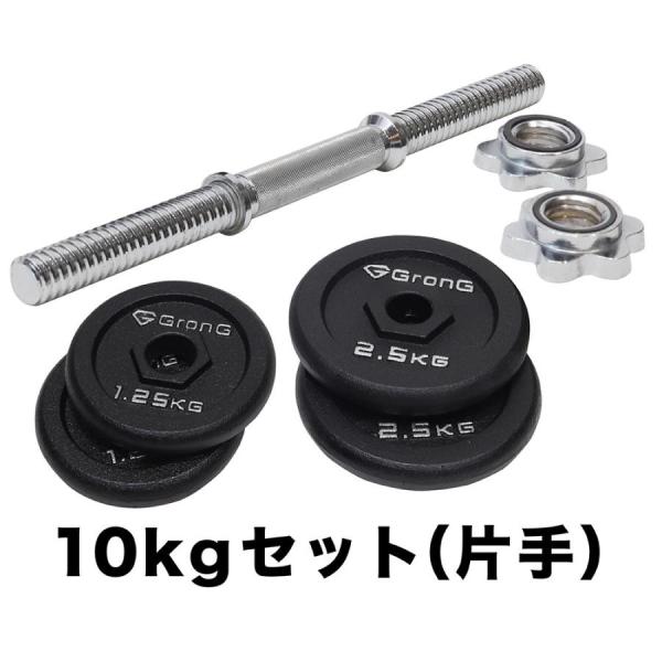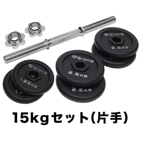 【5/1〜ポイント5%+最大600円OFFクーポン配布】グロング アイアンダンベル 30kg 片手 シャフト プレート セット 重量変更 調節可能 GronG 爆買