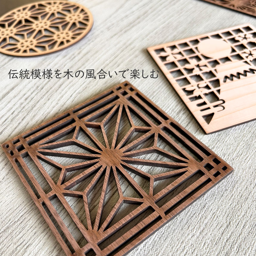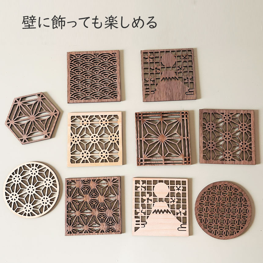 コースター木製 約10cm 2.5mm厚み 和柄が映える、木のぬくもりコースター 上質なひととき 置くだけで和のアクセント 飾れる