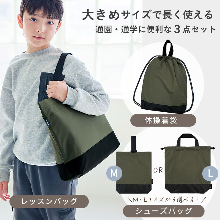 レッスンバッグ シューズバッグ 体操着入れ 入園入学 3点セット 男の子 女の子 小学生 幼稚園 保育園 ナイロン 撥水 おしゃれ シンプル dz131set