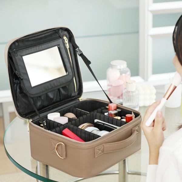 ショルダー付 メイクボックス 鏡付き 大容量 持ち運び コスメボックス メイクブラシケース スキンケア収納 化粧品 ギフト プレゼント クリスマス 柊