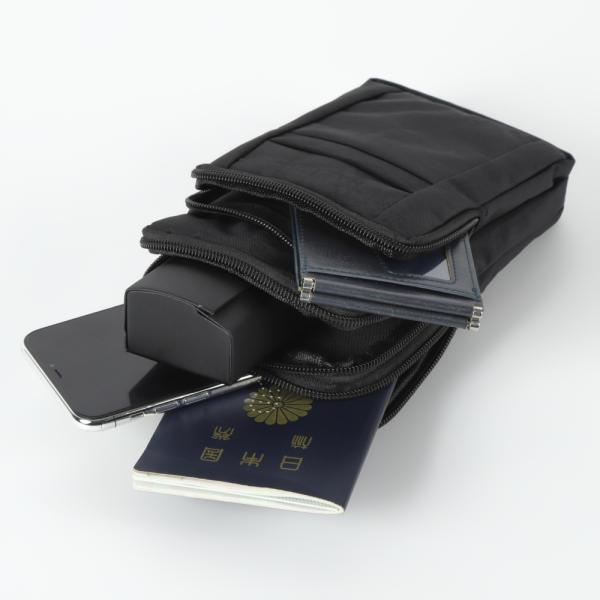6.3インチスマートフォンを2台同時収納可能、カード、鍵、お札、バッテリーなどの小物収納も可能。