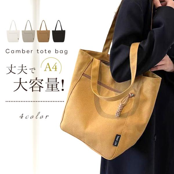 【5日迄限定1980円】キャンバストートバッグ レディース 肩掛け かばん ジッパー式 手提げ 自立 A4 大容量 無地 通勤 通学 オフィス カジュアル 爆買