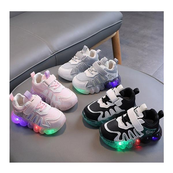 光る靴 キャラクタースニーカー ベビー キッズ ブラック ピンク レッド LED搭載 ライトシューズ 子供靴 男の子 女の子 プレゼント ギフト
