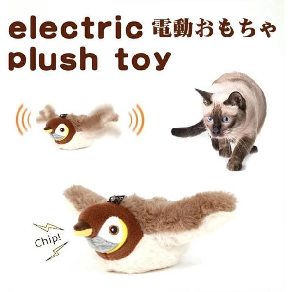 インタラクティブな鳥猫のおもちゃ 猫じゃらし 電動羽ばたきスズメ 羽付きバードティーザー 鮮やかな鳴き声を備えたシミュレーション飛行鳥 ぬいぐるみ