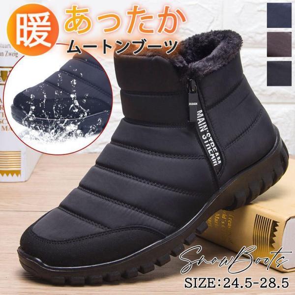 スノーブーツ メンズ ムートンブーツ レディース 裏ボア 雪靴 ショートブーツ スノーシューズ 冬 クッション 滑り止め 無地 防寒 撥水 裏フリース