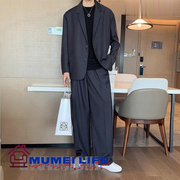 セットアップ メンズ カジュアルスーツ 上下セット ビッグシルエット テーラードジャケット ワイドスラックス ストレッチ 無地