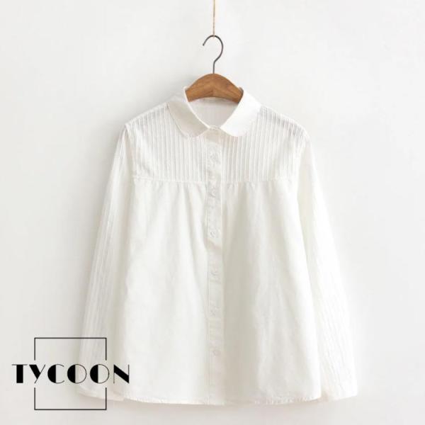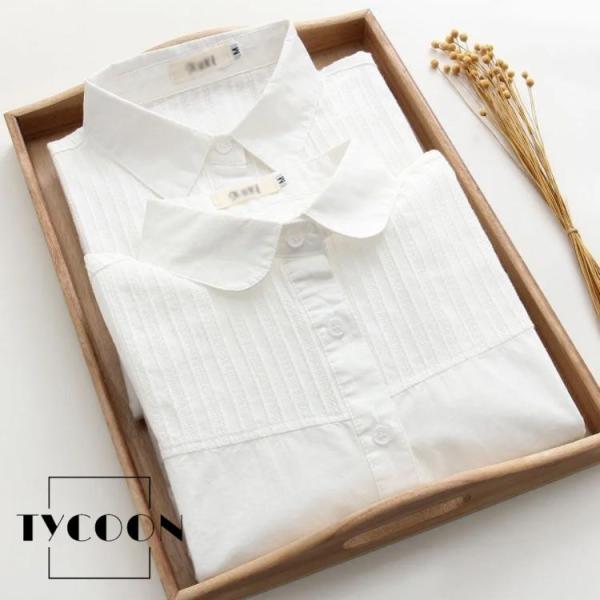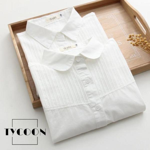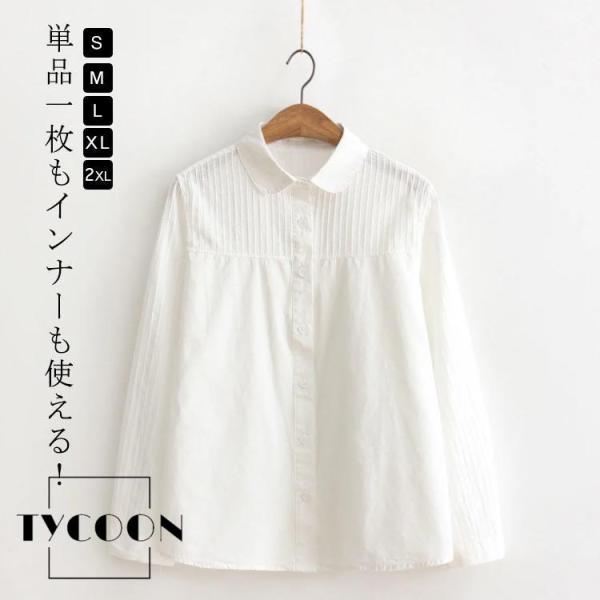白シャツ レディース 長袖 シャツ 長袖シャツ ブラウス 白 綿 コットン コットンシャツ 丸襟 レギュラーカラー 2タイプ シンプル 無地