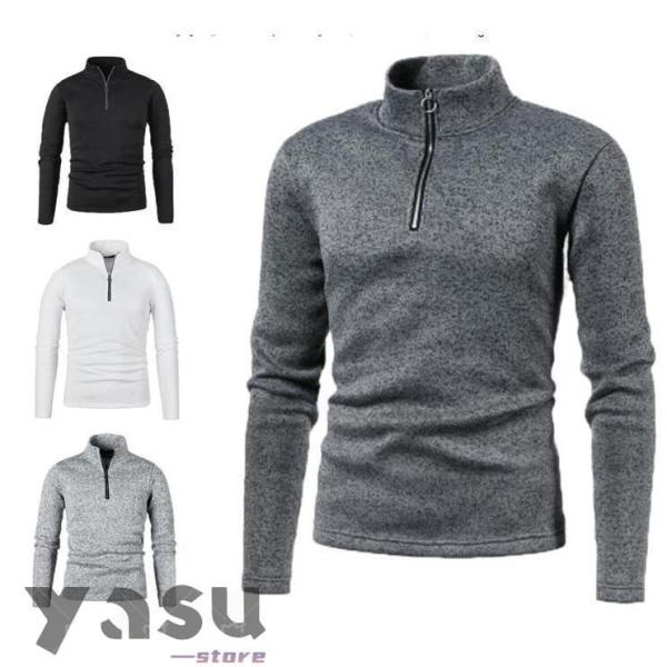 ハーフジップ トレーナー メンズ ハイネック スウェット ジップアップ セーター 長袖 ジッパー インナー スタンドカラー 立ち襟