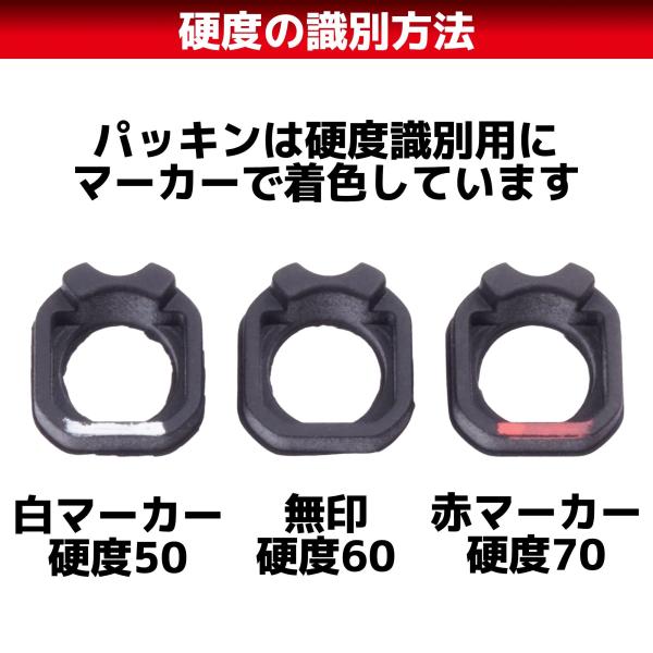 Dチャンバー専用設計で用意したホップパッキンは、硬度50、60、70の3種が付属しています。