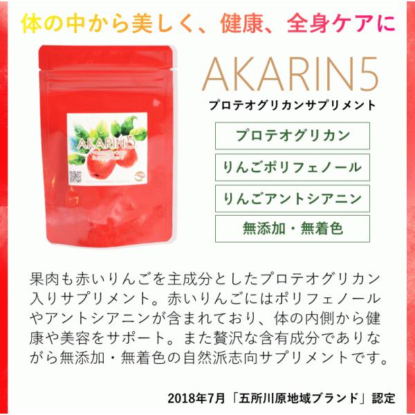 赤りんご プロテオグリカン サプリ 青森りんご 送料無料 Akarin5 45粒 青森県産 無添加 無着色 サケ鼻軟骨抽出物 あおもりPG 赤リンゴ 御所川原 メール便