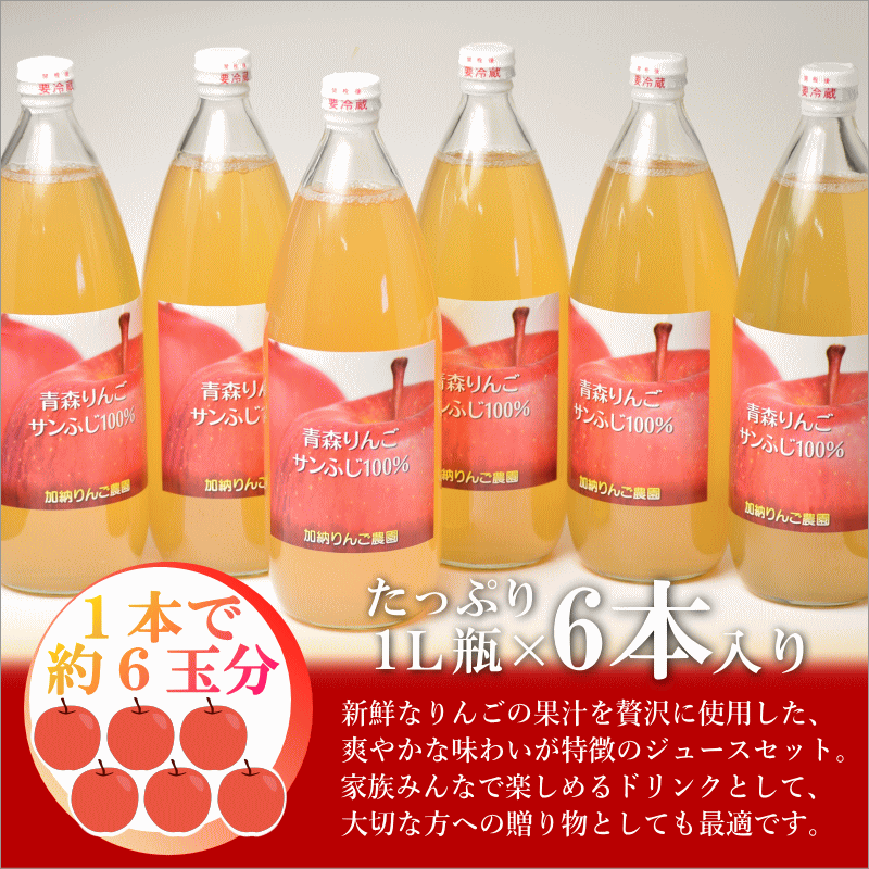 無添加 りんごジュース 青森 送料無料 1L×6本 100% りんごジュース ストレート 飲む生果りんご アップルジュース 青森りんご 青森リンゴ