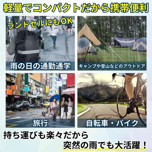 登山・ハイキング・キャンプ・トレッキングなどのアウトドアにも、雨の日、雪の日にもひとつ携帯しておくと安心です。日常の通勤やお子様の通学、レジャー、スポーツ、旅行、災害時など色々なシーンで使用することができます。