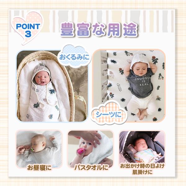 新生児のおくるみや、小さなお子様のお昼寝用のブランケット、