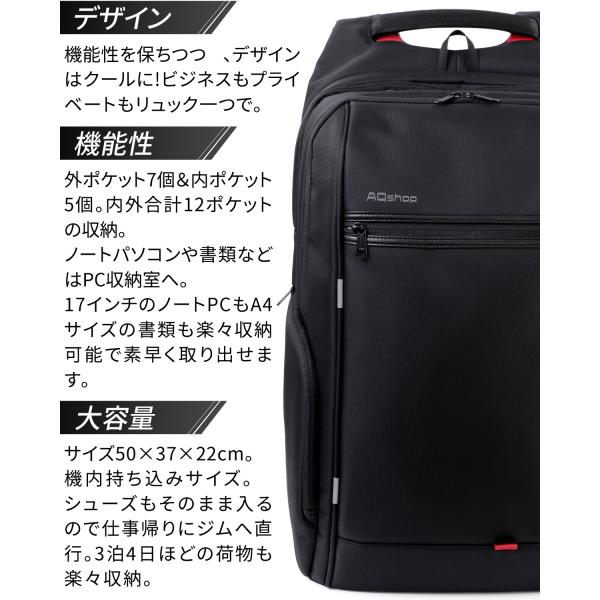 ビジネスリュック 大容量 メンズ 防水 レインカバー付き 40L 通勤 通学 20代 30代 チェストベルト付属 A4 ノート PC 収納 黒 AQshop セール