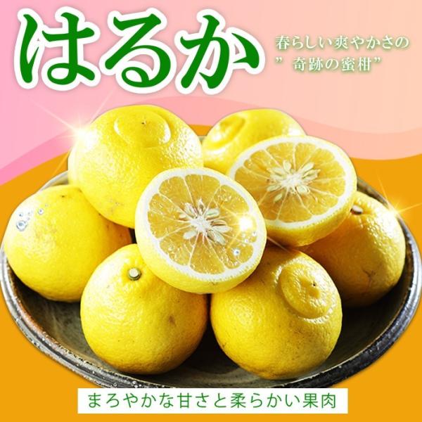 はるかは日向夏(ひゅうがなつ)の種から偶然生まれた、平成生まれの新品種です。はるかは酸っぱそうな見た目に反して、酸味はほとんどない為、砂糖がかかったような爽やかで優しい甘さを感じていただけます。クラッシュゼリーのようなぷるっとした食感をお楽しみいただけます。