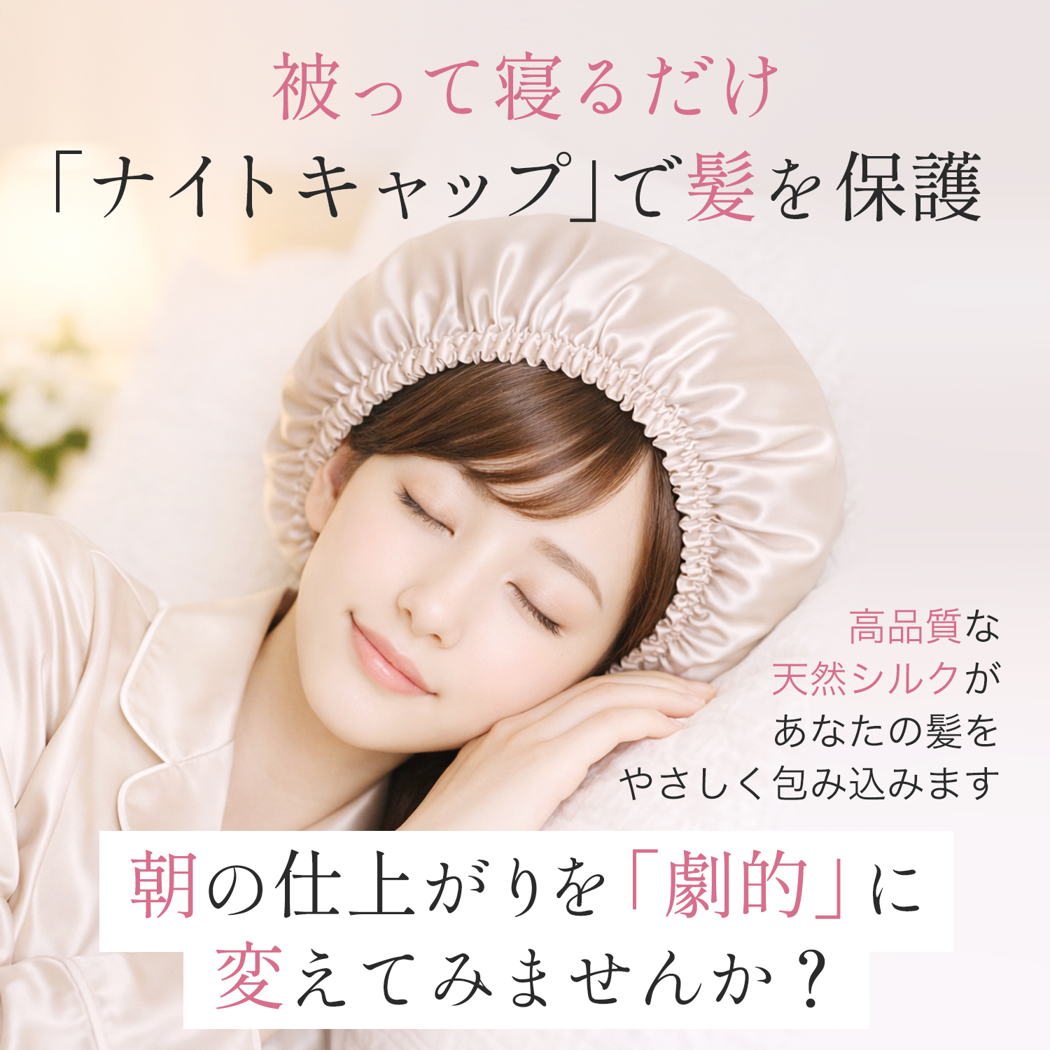 シルク100%ナイトキャップ 9カラー ヘアケア スキンケア ショートヘア用