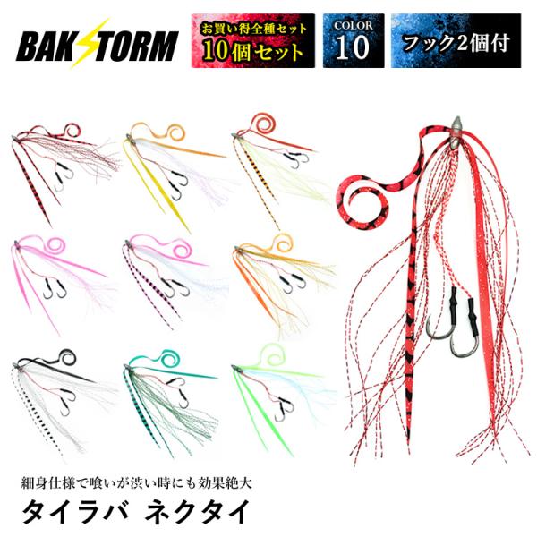 タイラバ ネクタイ ティンセル付 フック 2個付 全種10個セット スカート 交換用 針 スパイラル PE 釣り具 BAKSTORM バクスト