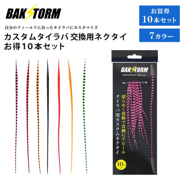 カスタム タイラバ 交換用 ネクタイ お得10本セット ストレート 長さ22cm 単品 7色 PE 丈夫 BAKSTORM バクスト