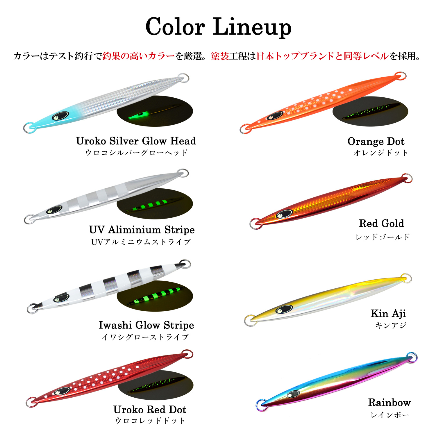 ◇中深海でも対応可能なドットカラー、UVカラー、大物カンパチカラー等を採用。