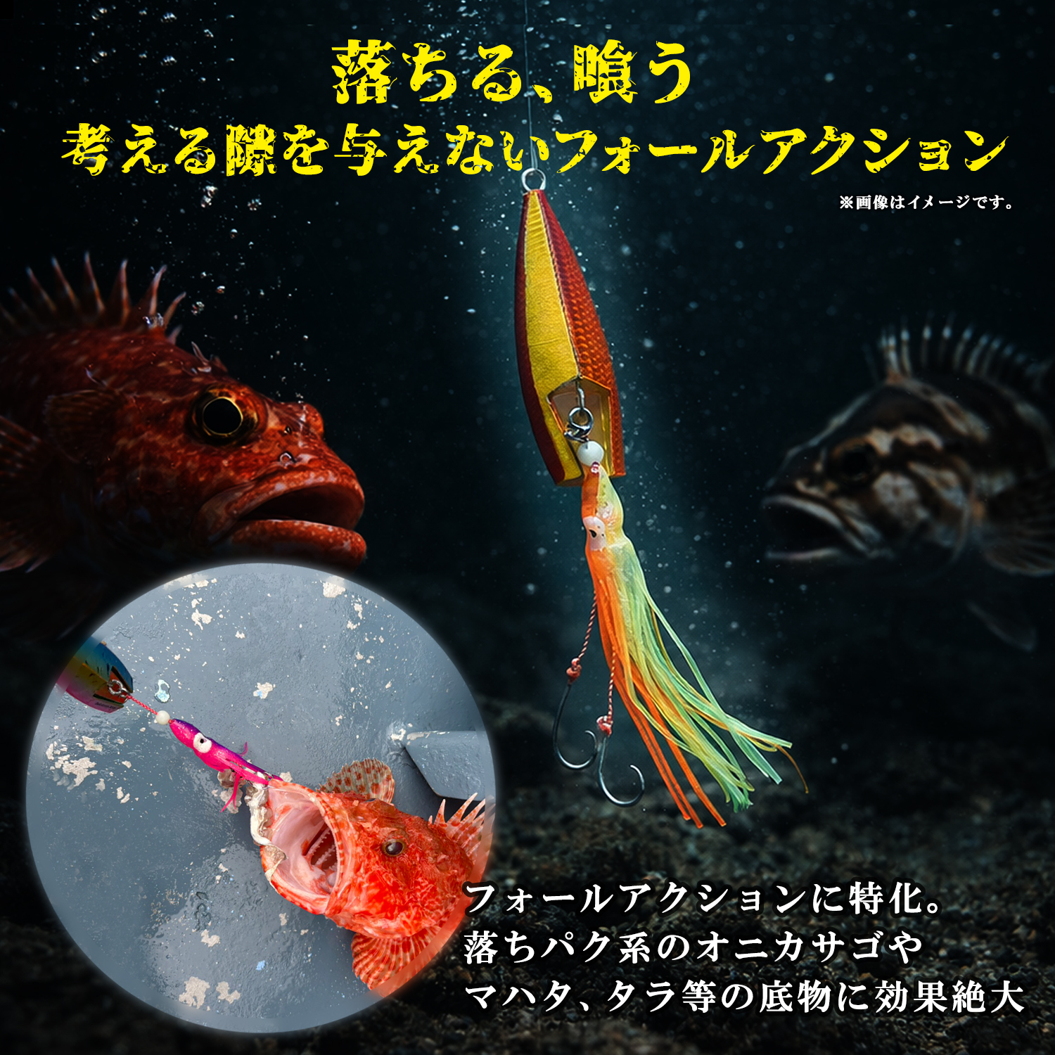 ◇フォールアクションに特化。落ちパク系のオニカサゴやマハタ等の底物に効果絶大。
