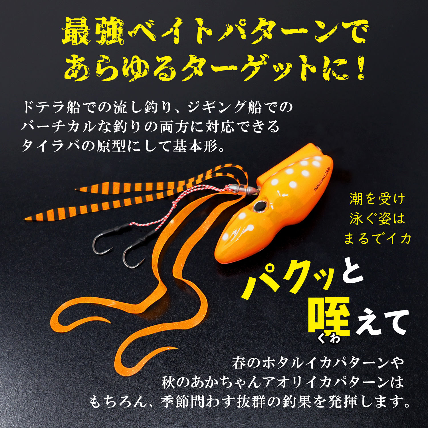◇ドテラ船での流し釣り、ジギング船でのバーチカルな釣りの両方に対応できるタイラバの原型にして基本形。