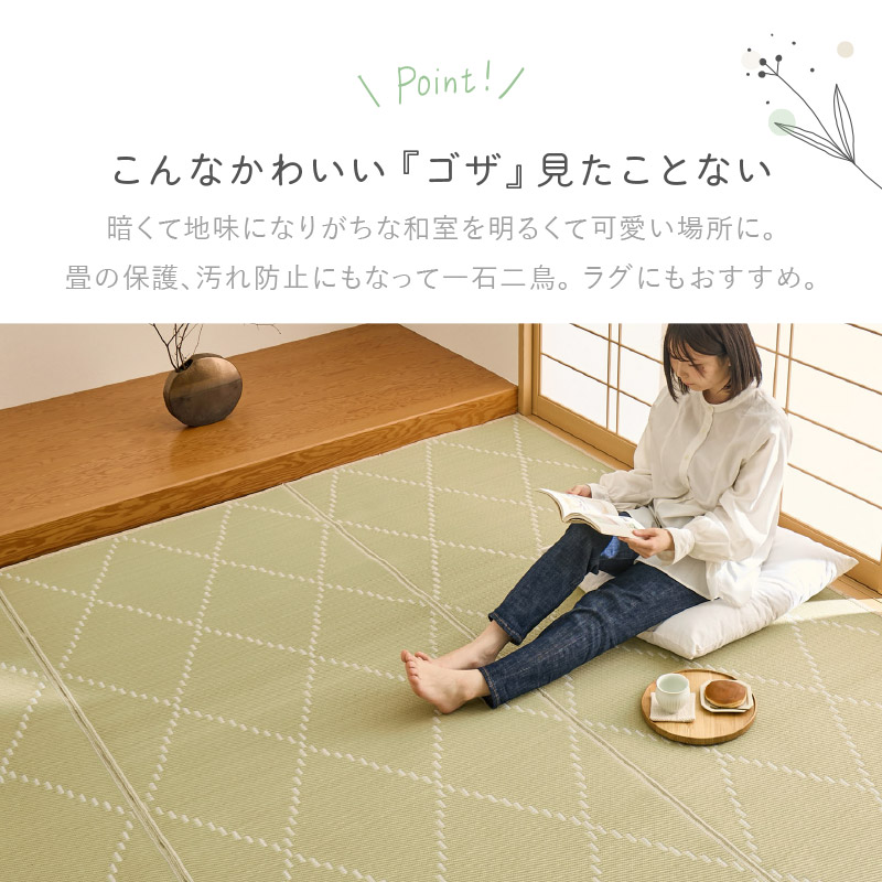 ラグ 洗える カーペット ビニール風 ゴザ 3畳 3帖 江戸間 174×261cm 花ござ たたみ風 洗える かわいい 柄 上敷き ござ ペット モンド