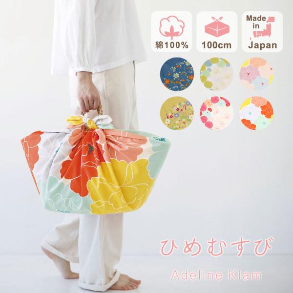 ひめむすび Adeline Klam アデリーヌ クラム 風呂敷 ふろしき 大判 大きい 100cm 綿 100% オーガニックコットン むす美 おしゃれ 【タイプA-L対応商品】