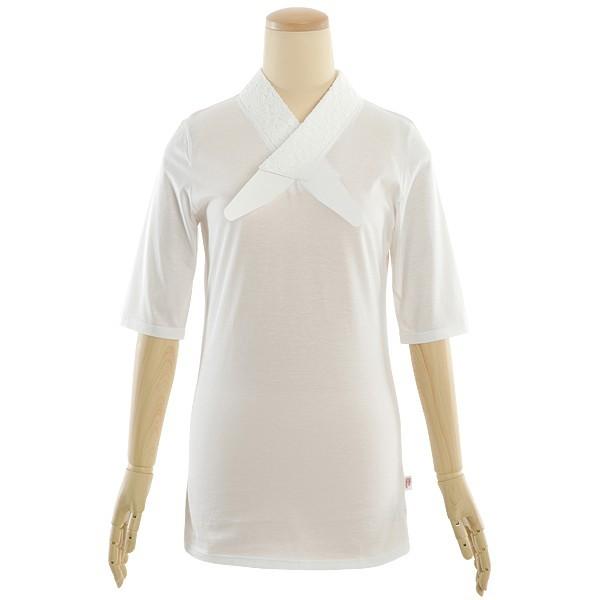 半襦袢 うそつき 女性用和装着物インナー ふぁんじゅ Tシャツ襦袢 レース衿 ホワイト 半衿付き
