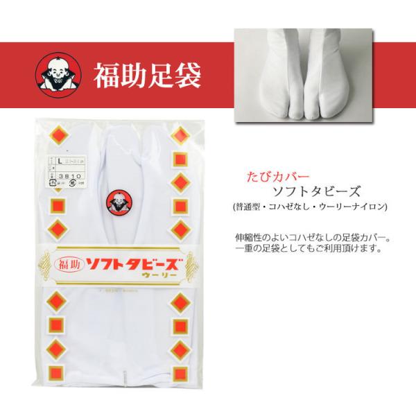 福助 足袋カバー ソフトタビーズ 2L〜3L コハゼなし 【 25.0〜26.5 】 白足袋カバー 3810