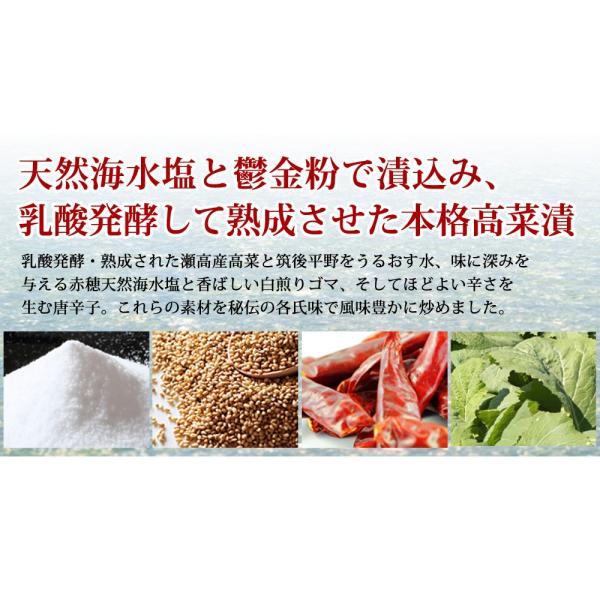 「高菜漬」伝承の地 である福岡産の高菜のみを使用。