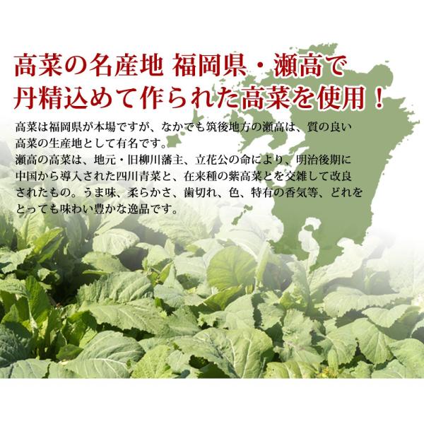 「高菜漬」伝承の地 である福岡産の高菜のみを使用。